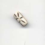 12x6mm tubular bone beads. White/ivory with brown decoration.