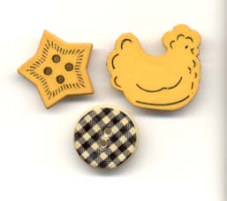 Button pack hens, stars and checked buttons. Approx 6 pieces.
