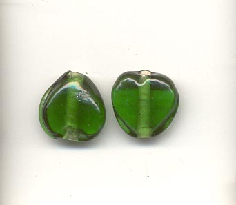 Glass moon beads, heart shaped in opaque and clear double sided finishes.