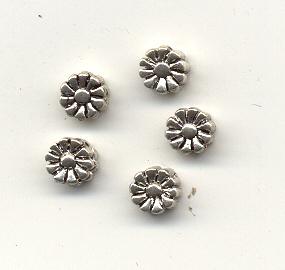 Silver coloured plastic metal beads. Pack of 10 flowers.